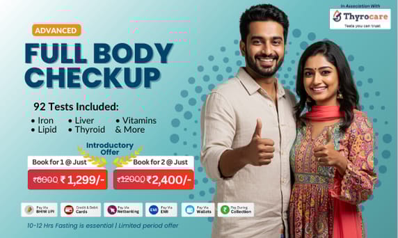 Your health is your most valuable asset — and it’s time to take charge with our Advanced Full Body Checkup, now available at an introductory price in association with Thyrocare.