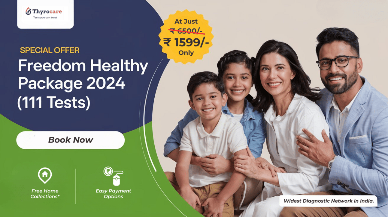 Take control of your health with Thyrocare’s Freedom Healthy Package 2024! Get 111 essential tests for only ₹1599 (originally ₹6500)!