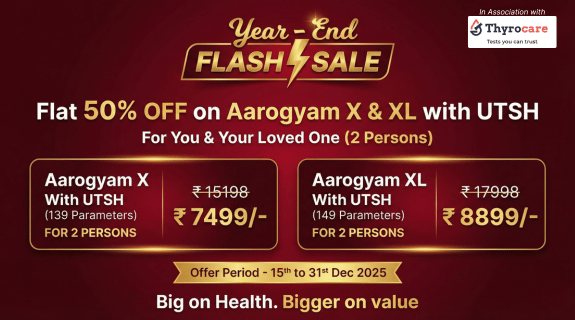 Take charge of your health before the year ends with Thyrocare’s Year‑End Flash Sale on comprehensive Aarogyam full body checkups with UTSH for you and your loved one (2 persons).